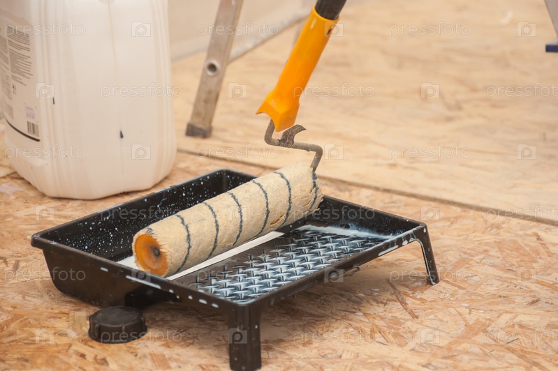 В процессе грунтования валик и емкость для закрепления краски или наносимого элемента