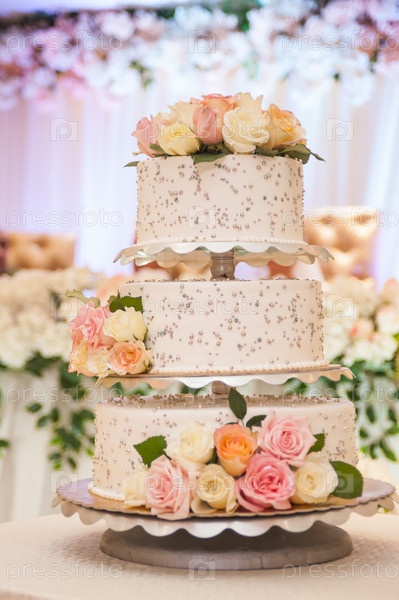 Свадебный торт, украшенный жевательными розами