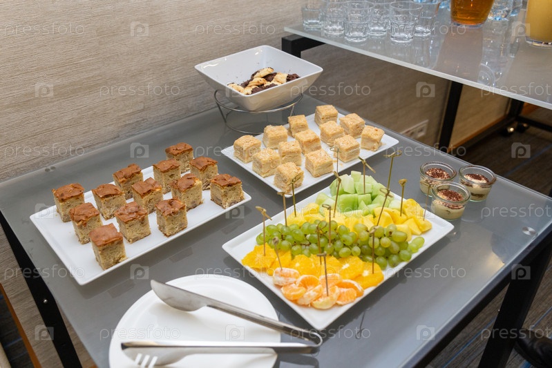 Разные виды десерта на банкете, посвященном свадьбе, дню рождения или другой праздничной дате