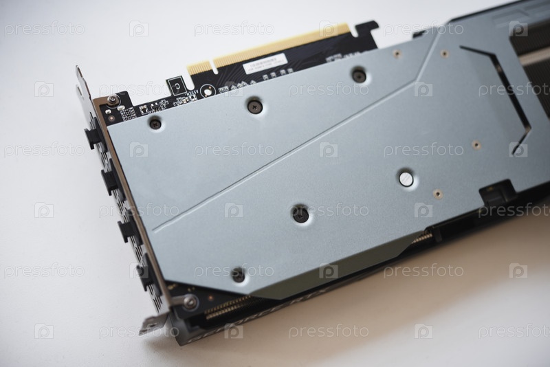 Корпус видеокарты на белом фоне. Устройство для компьютера. Радиатор видеокарты