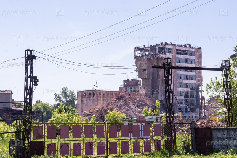 Снос огромного комбикормового завода 'Болшево-хлебопродукт', городской округ Пушкино поселок Лесные Поляны, Подмосковье.Снос огромной кормовой фабрики Bolshevo-khleboprodukt , Pushkino city district, Lesnye Polyany village, Moscow region