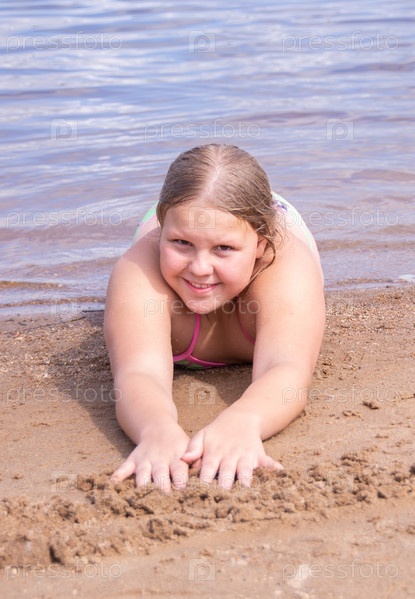 В жаркий летний день ребенок отдыхает на озере. Девочка на пляже. В знойный летний день ребёнок расслабляется у озера