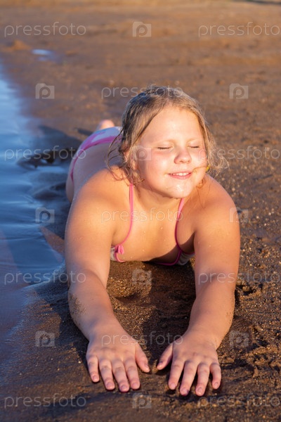 В жаркий летний день ребенок отдыхает на озере. Девочка на пляже. В знойный летний день ребёнок расслабляется у озера