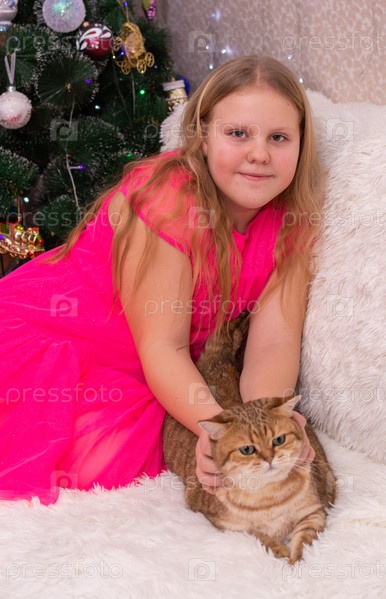 Девушка держит на руках красивого кота.Девочка держит на руках красивого кота