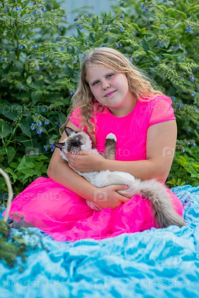 Девушка держит на руках красивого кота.Девочка держит на руках красивого кота