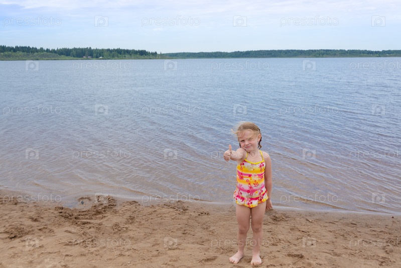 В жаркий летний день ребенок отдыхает на озере. Девочка на пляже. В знойный летний день ребёнок расслабляется у озера