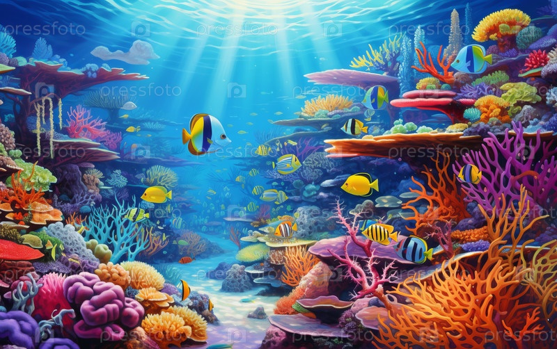 Небольшой подводный каньон, вырезанный волнами в переднем рифе с солнечным светом через поверхность воды