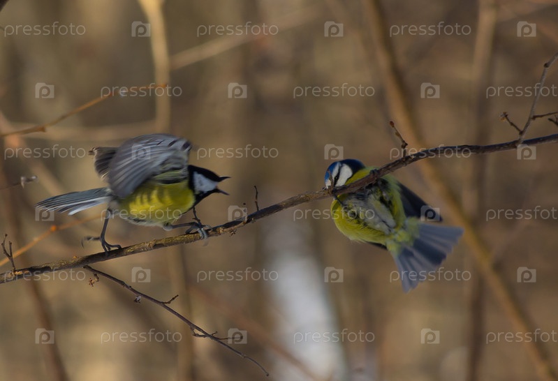 Драка большой синицы и лазоревки