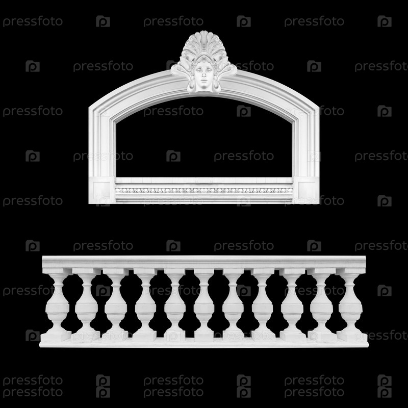 Детали, элементы зданий классической архитектуры. Шаблоны для искусства, дизайна. Изолированные на черном