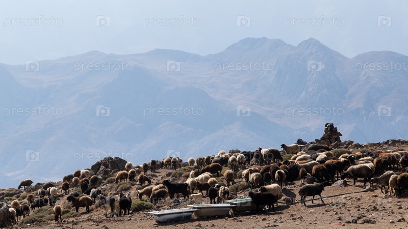 Стадо овец в иранских горах, Эльбрус, Иран