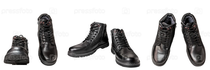 Сапоги из натуральной кожи. Мужские черные туфли. Изолированные на белом фоне