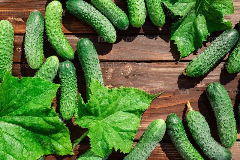 Свежие огурцы на фоне деревянных досок