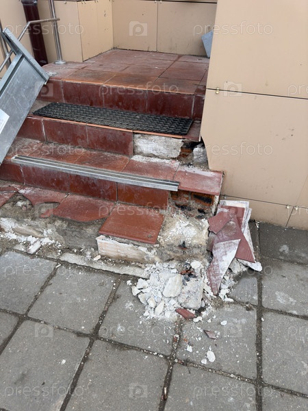 Коричневые бетонные сломанные ступени входа