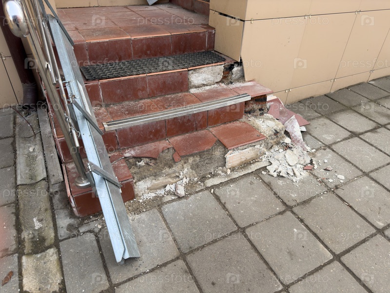 Коричневые бетонные сломанные ступени входа