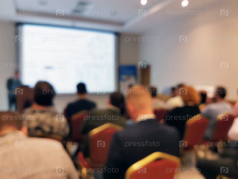 Размытое фоновое изображение аудитории на бизнес-конференции или семинаре. Аудитория слушает лектора на конференции в аудитории