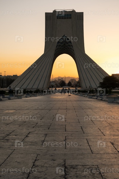 Башня Азади или Башня Свободы, ранее известная как Башня Шахьяд, на рассвете в Тегеране, Иран