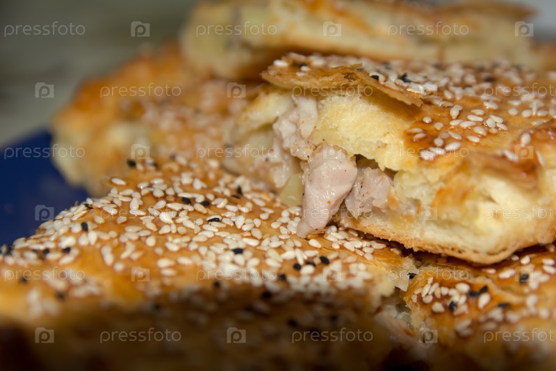 Домашний мясной пирог и картофельный пирог с кунжутом