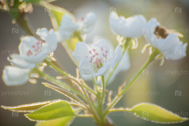Весенняя цветущая яблоня в солнечном свете, белый цветок