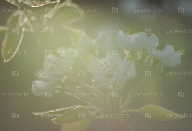 Весенняя цветущая яблоня в солнечном свете, белый цветок