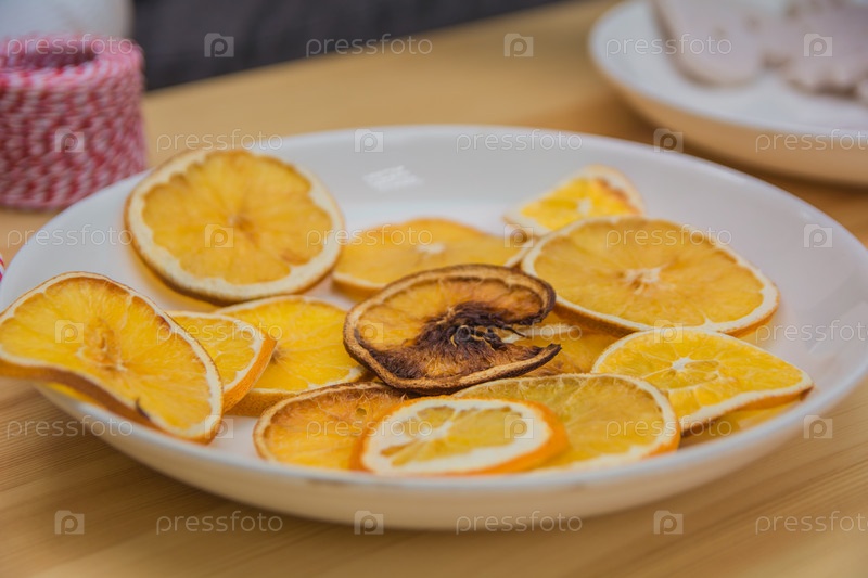 Сушеный и слегка поджаренный лимон для рождественских украшений