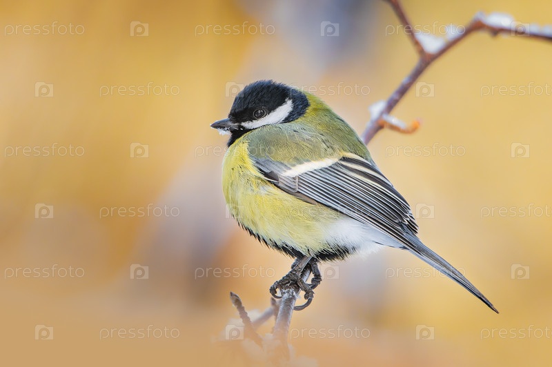 Большая синица на ветке в лесу
