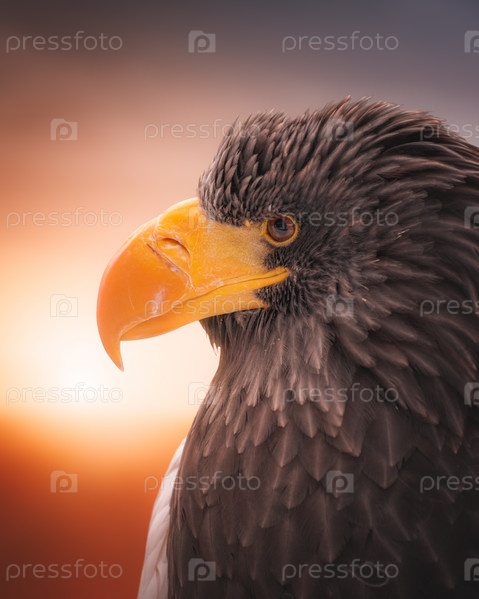 Портрет белоплечего орлана на закате