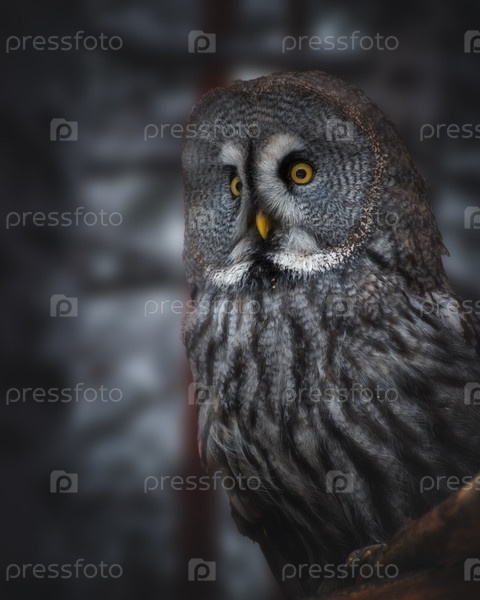 Сова бородатая неясыть в зимнем лесу