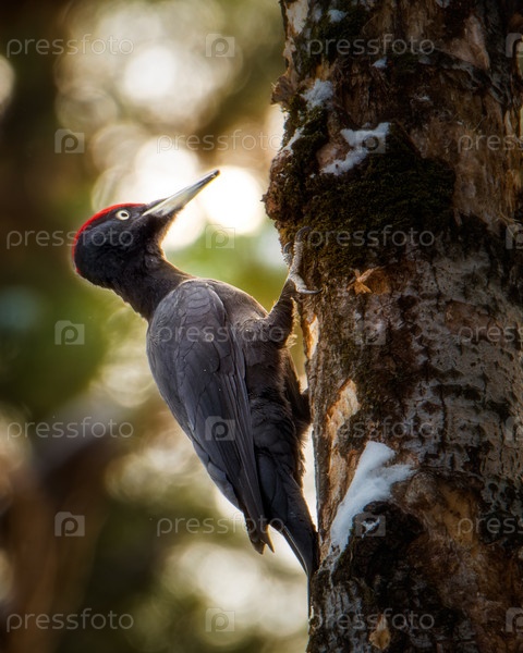 Черный дятел желна долбит дерево