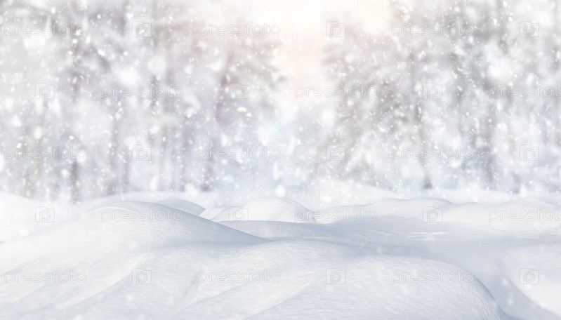 Зимний панорамный морозный пейзаж. Снежный фон