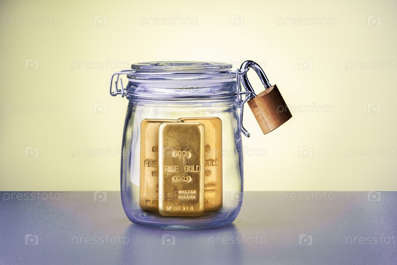 Золотые слитки в сейфе. Инвестиции в золотые слитки в концепцию будущего. Золотой металл – это настоящее богатство