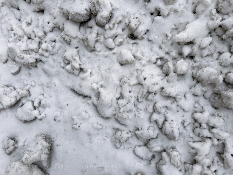 Текстура кусочков белого снега лежит на дороге