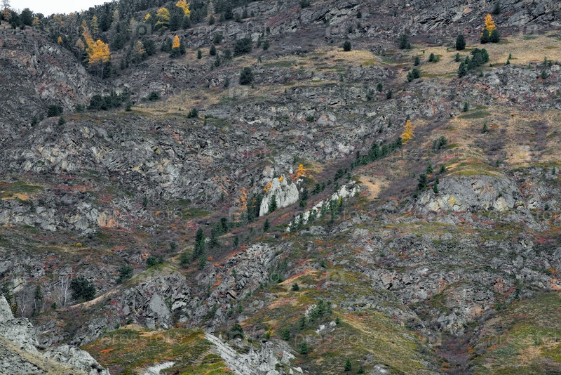 Россия. Юг Западной Сибири, Горный Алтай. Вид на неприступные Каменные Грибы в ущелье Катуярык Алтайского заповедника на правом берегу реки Чулышман