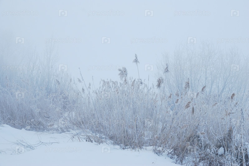 Зимний туман в окрестностях Омска, Сибирь Россия