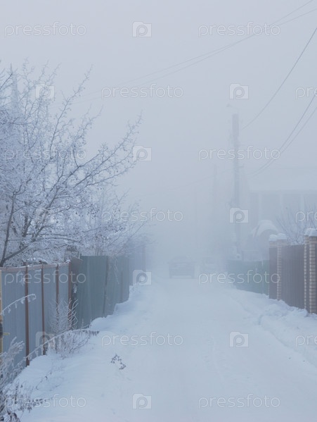 Зимний туман в окрестностях Омска, Сибирь Россия