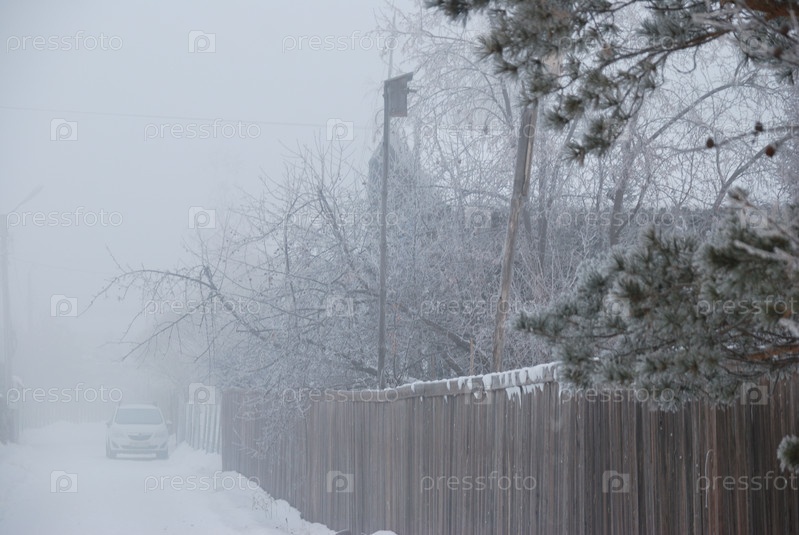 Зимний туман в окрестностях Омска, Сибирь Россия