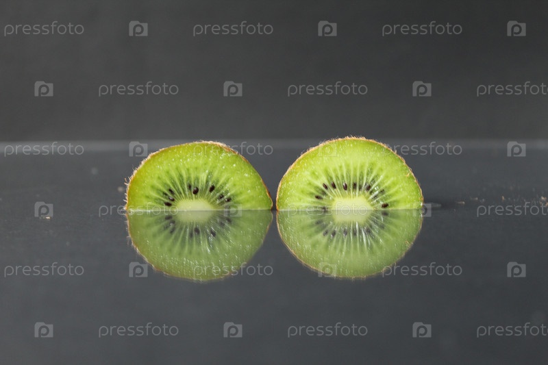 Два или три круга зеленого полукруга киви с черным глянцевым натюрмортом
