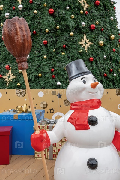 Новогодний рождественский снеговик как украшение крупным планом