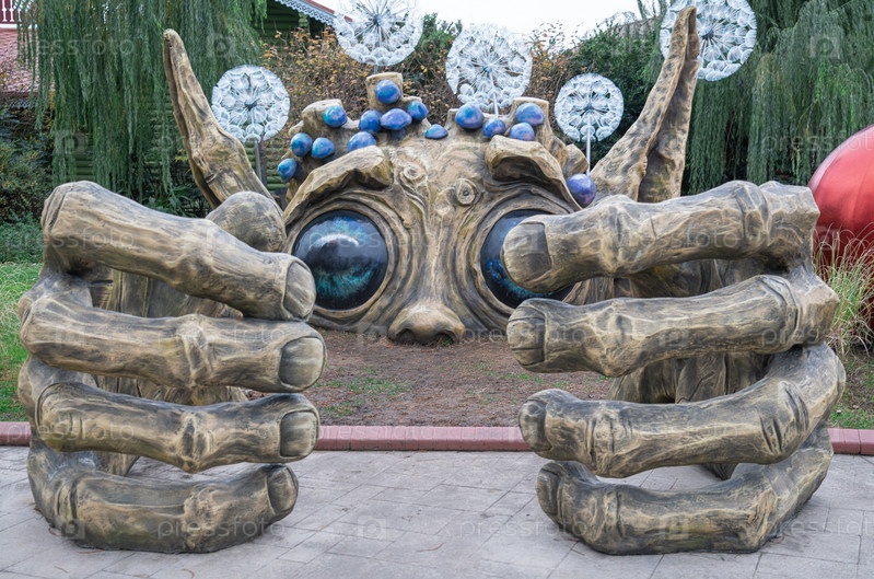 Скульптура страшного тролля в парке