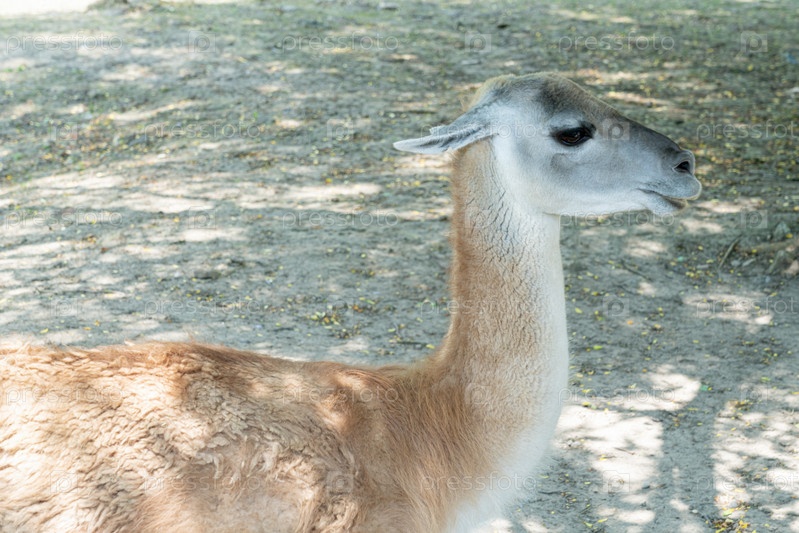 Портрет гуанако крупным планом на однородном фоне