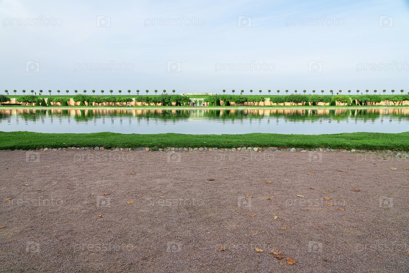 Вид на сад и пруд Венеры возле дворца Марли в Нижнем парке Петергофа