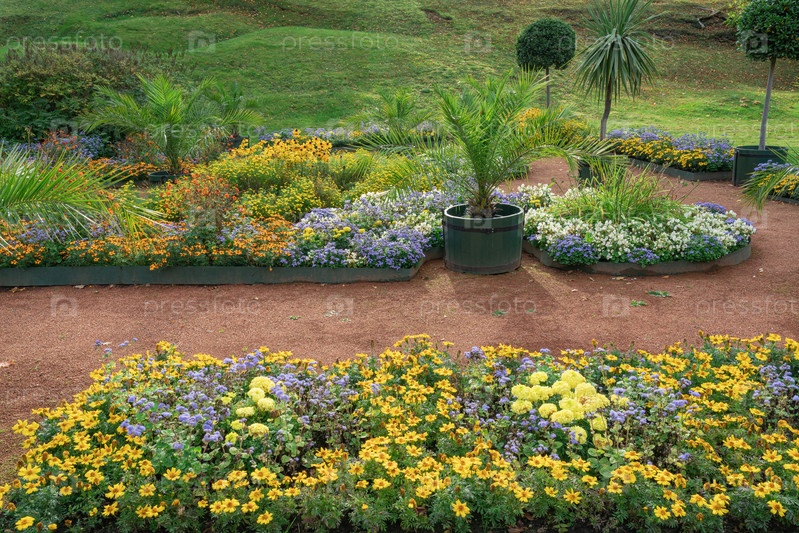 Вид на сад в Петергофском парке в Санкт-Петербурге