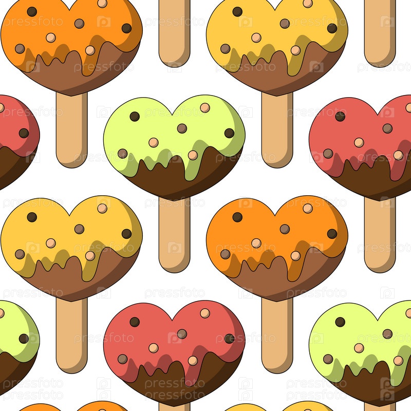 Бесшовный узор с мороженым на сердце в форме палочки