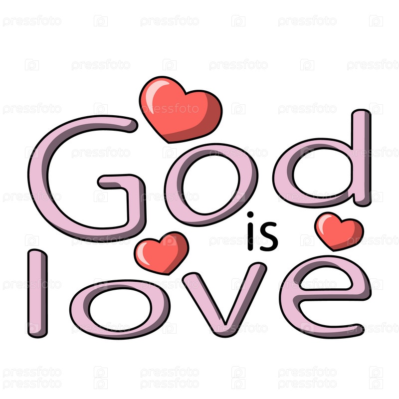 Мультфильм Надпись фразы "Бог есть любовь" в цвете
