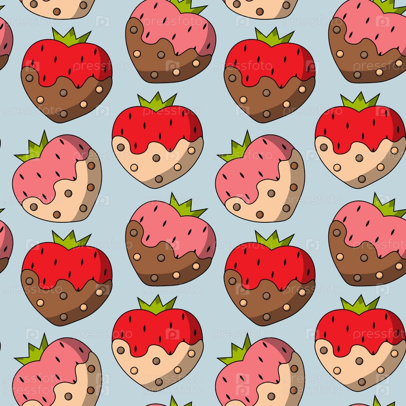 Бесшовный узор с клубникой в сердце в форме шоколада