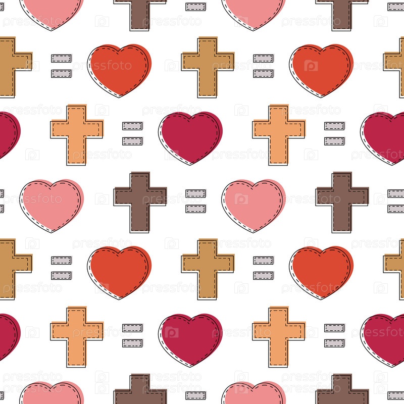 Бесшовный узор с христианским крестом и сердцем в линейном стиле