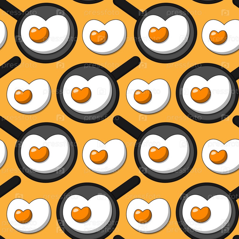 Бесшовный узор с яичницей на сковороде в форме сердца