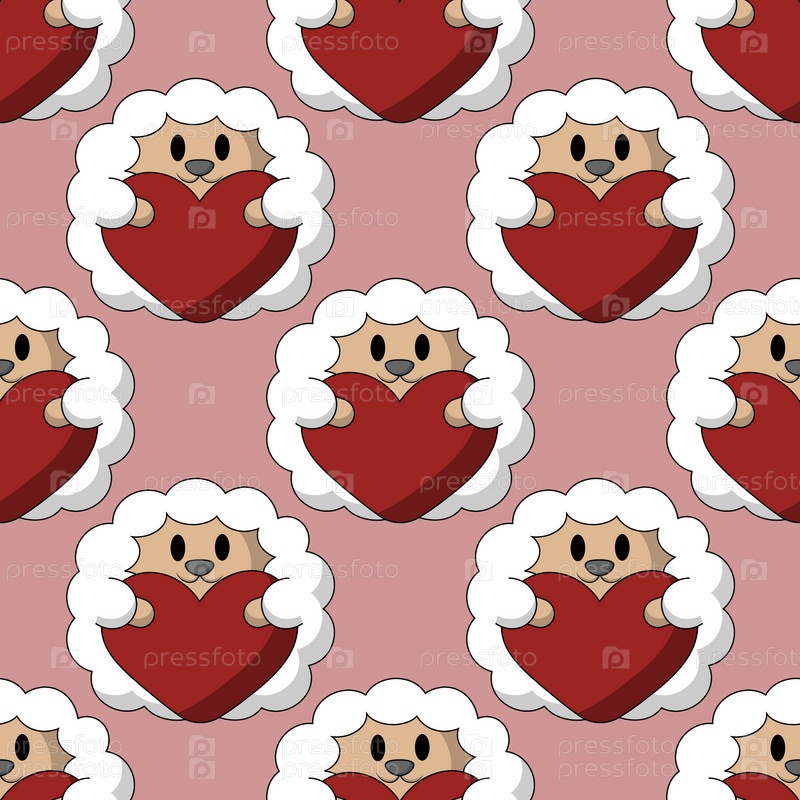 Бесшовный узор с милыми овцами с сердцем