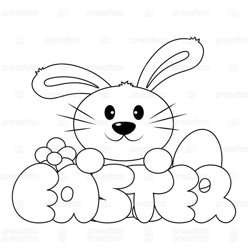 Милый мультяшный кролик со словом Пасха в черно-белом цвете