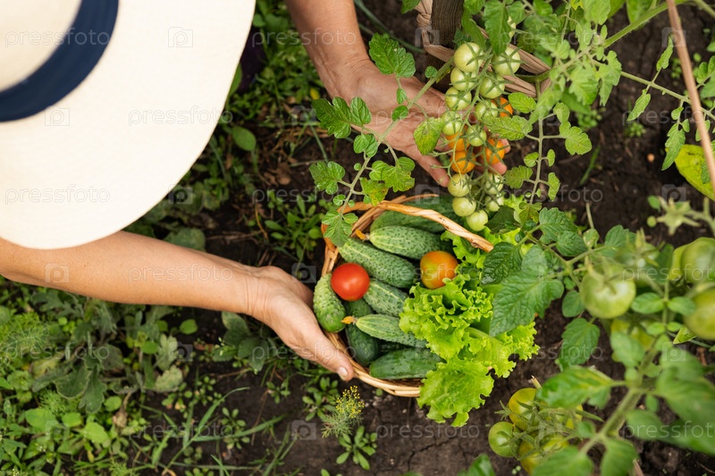 Сбор красных помидоров в саду