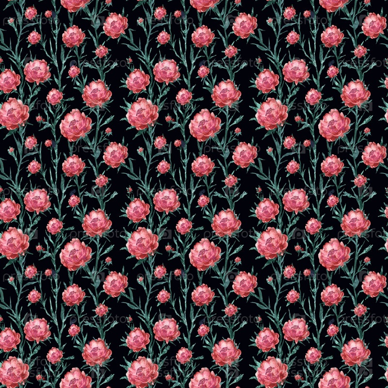 Бесшовный узор с красными цветами, анемонами, розами на черном фоне, цветочный фон, цветочная иллюстрация для фона, нарисованная вручную иллюстрация